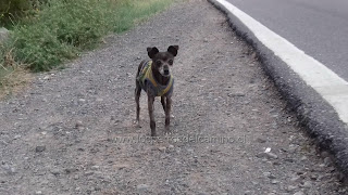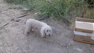 Como siempre trato de irme a los caminos antes del día de pascua para dejar alimentados y con agua a los perros que van quedando. Mi recorrido estuvo tranquilo dentro de lo que se puede, cuando venía de vuelta llamó mi atención unas cajas botadas al costado izquierdo de la calzada, y en ella un poodle esquelético que caminaba apenas. Me detengo para dejarle alimento, pero al verme se escabulle en su lento caminar, otros perros del sector lo corretean, y el arranca. Trato de seguirlo, lo busqué, pero no lo encontré.